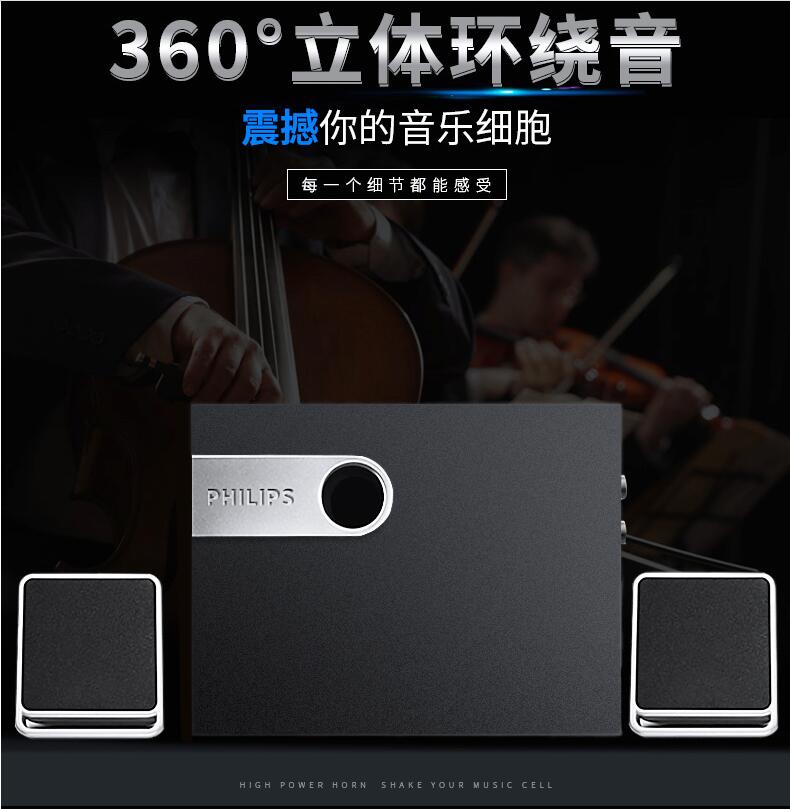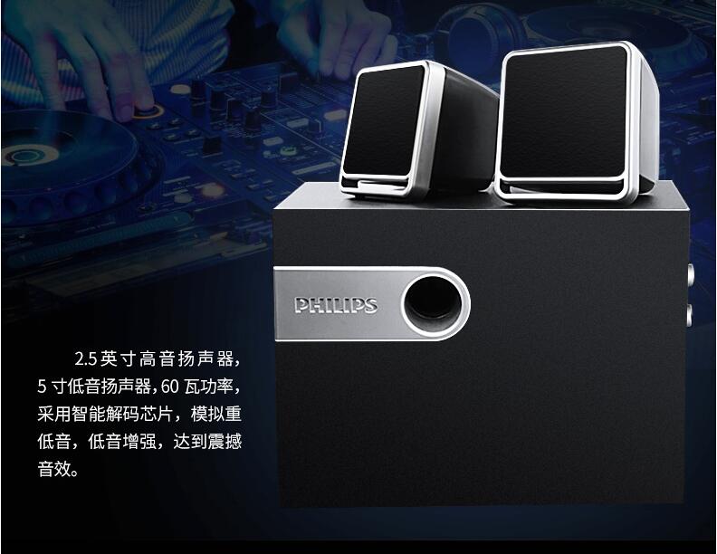 Philips/飛利浦SPA2341/93 電腦音響家用臺(tái)式筆記本低音炮多媒體2.1音箱桌面客廳電視通用超重低音影響